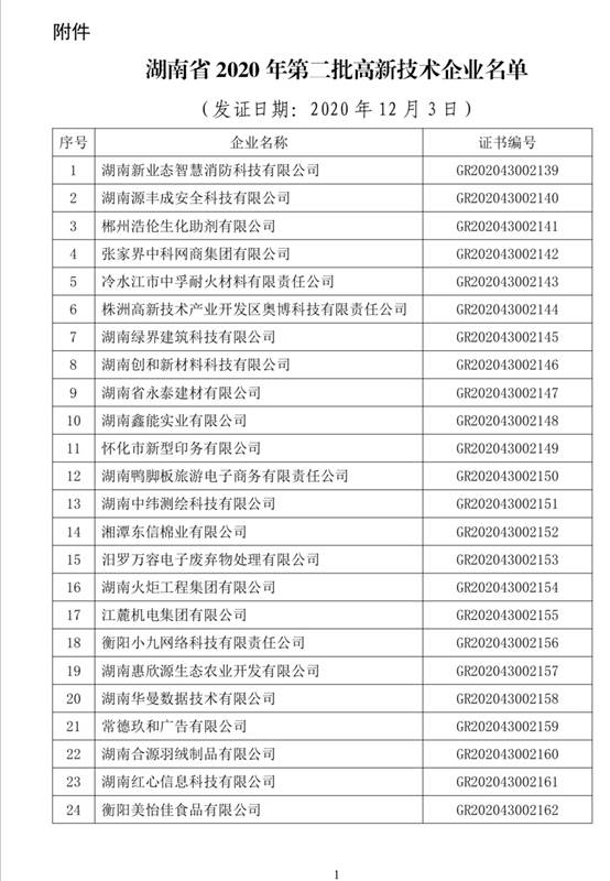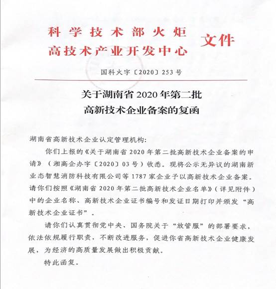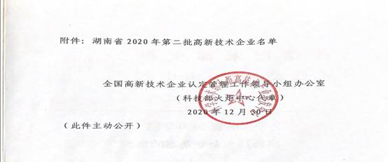 株洲市中建新材料通過高新技術(shù)企業(yè)認定的公告